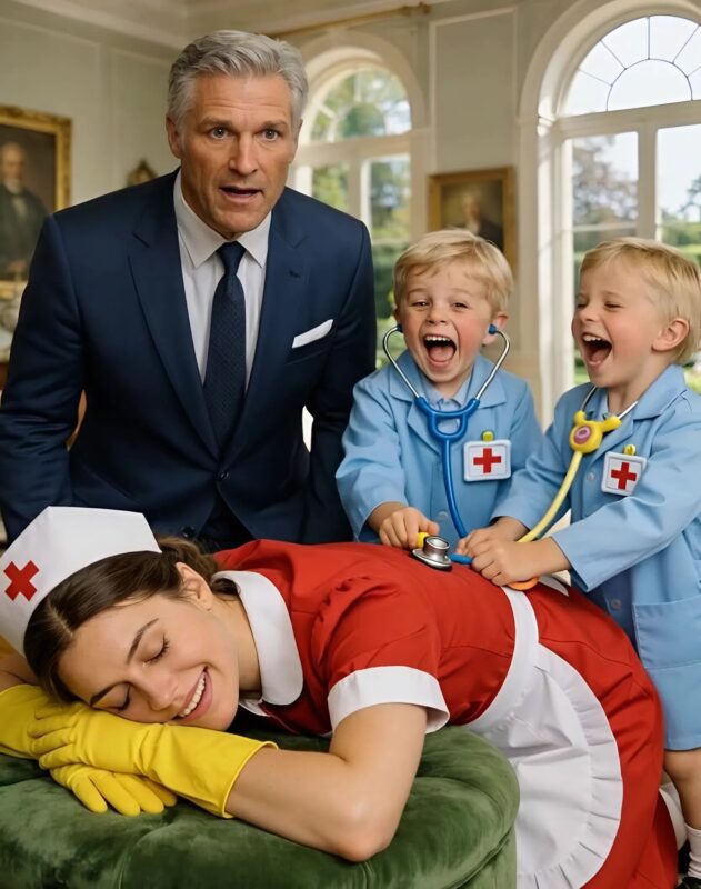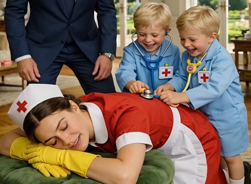 Една вечер Виктор се прибра по-рано. В хола ехтеше смях. Той спря рязко. 😱 Клара лежеше на подложка за крака, докато Ноа и Елиас я изследваха с медицински играчки.